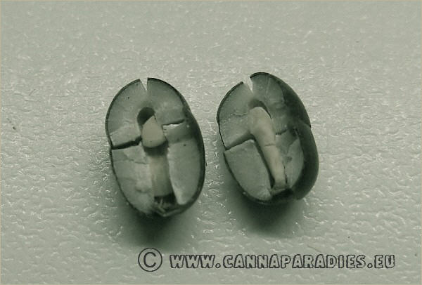 - Auf diesem Foto wurde ein gespaltener Saatkern festgehalten, um zu zeigen, wie dort der ruhende Kleimling eingebettet ist. (10/16)