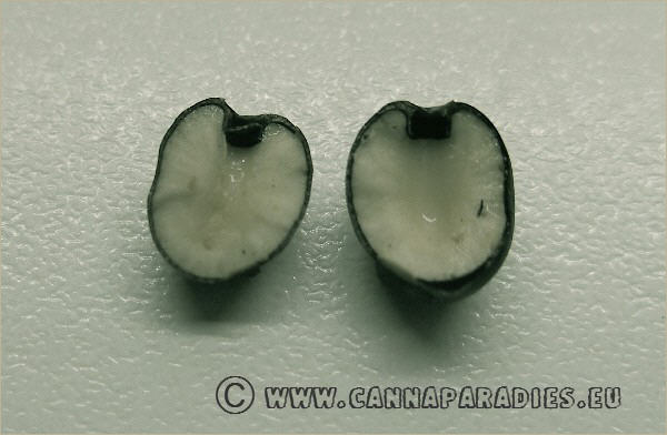 | Kern ohne Keimling - Wie bereits im Kapital Vererbungslehre angedeutet, kommt es gelegentlich auch vor, dass bei der Befruchtung bestimmte Chromosomen nicht überein stimmen. Der Saatkern bleibt dann leer und ist somit nicht triebfähig. (11/16) | ||