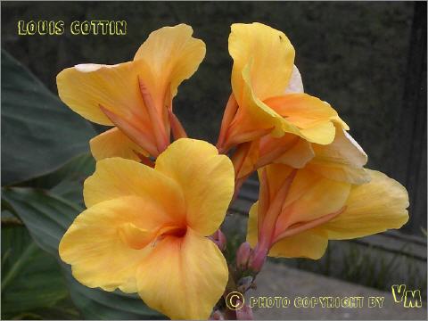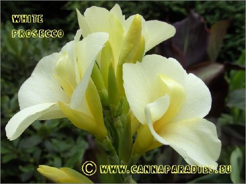 Im oberen Bild sehen Sie die typische Ursprungsart, eine Achira (C. edulis) mit schmalen, länglichen Blütenblättern und essbaren Rhizomen.