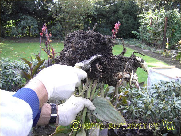 - Zur ersten groben Säuberung dreht man die Staude mit ihrem Wurzelwerk noch oben um. (11/25)