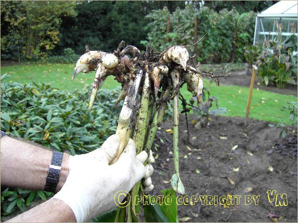 Restreinigung - Ist die Masse des Bodens entfernt, geht man an die Endreinigung. Das Auskratzen hat stets von oben herab zu erfolgen. Immer in Richtung Rhizomspitzen. Damit vermeidet man am ehesten Beschädigungen. (14/25) | ![]() |