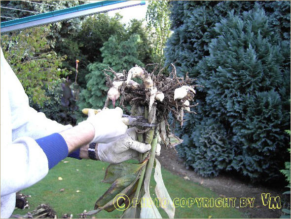 - Ist die ganze Staude weitestgehend vom Erdreich gesäubert, wird das gesamte Blattwerk abgeschnitten. (16/25)