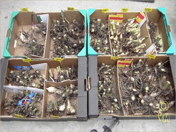 - Jetzt aber zurück zu den restlichen Arbeitsschritten. Die Rhizome werden nach ihren Namen sortiert in Kartons gelegt, mit ihren Spitzen nach oben, Richtung Himmel. (22/25)