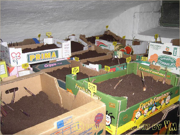 Kontrolle - Nach etwa 4 bis 6 Wochen ist es sehr angeraten, die für die Überwinterung eingelagerten Rhizome zu kontrollieren. Ist der Torf oder Sand pulvertrocken, wird er gegen frischeren ausgetauscht. Denn besonders kleine oder sehr dünne Rhizomsorten sind gegen die Trockenheit schlecht gewappnet. Sie schrumpfen dann auch schon einmal ein und können dann für die Anzucht im Frühjahr kaum noch gebraucht werden. (25/25) | ![]() |